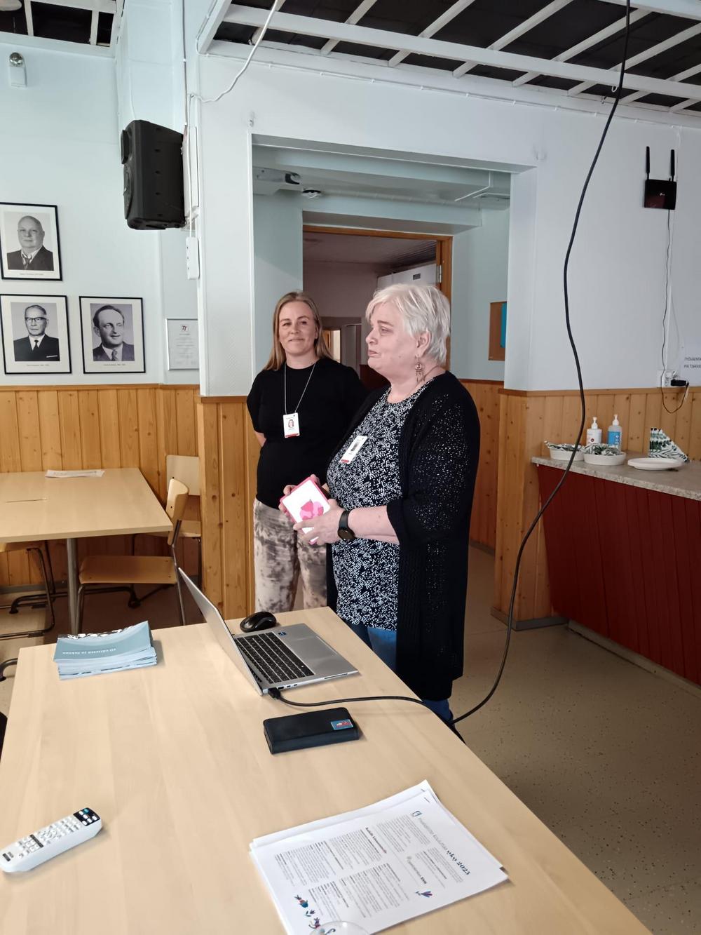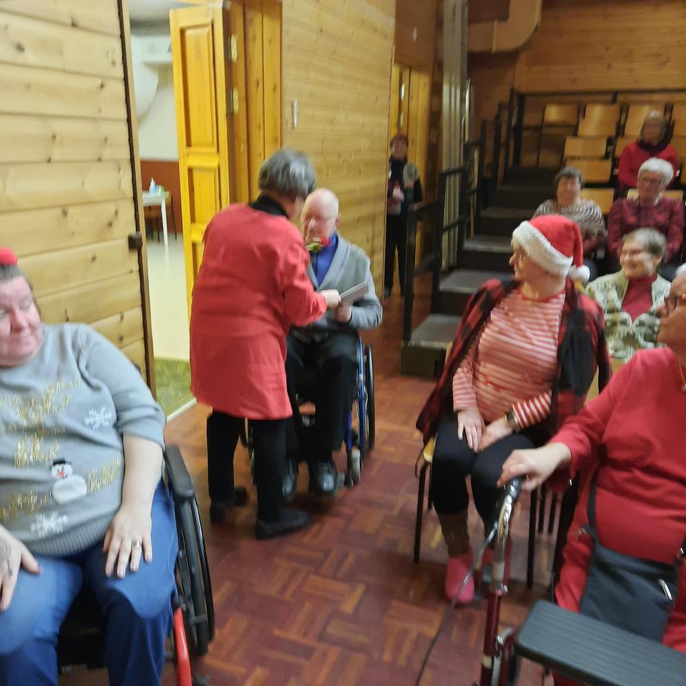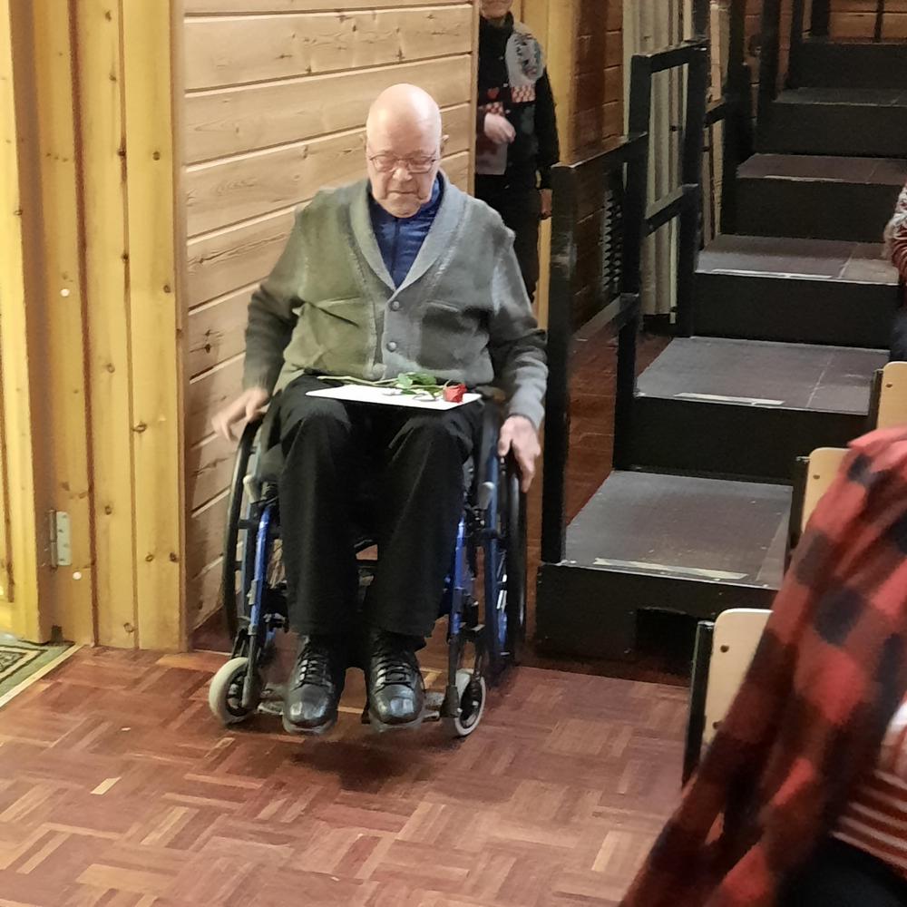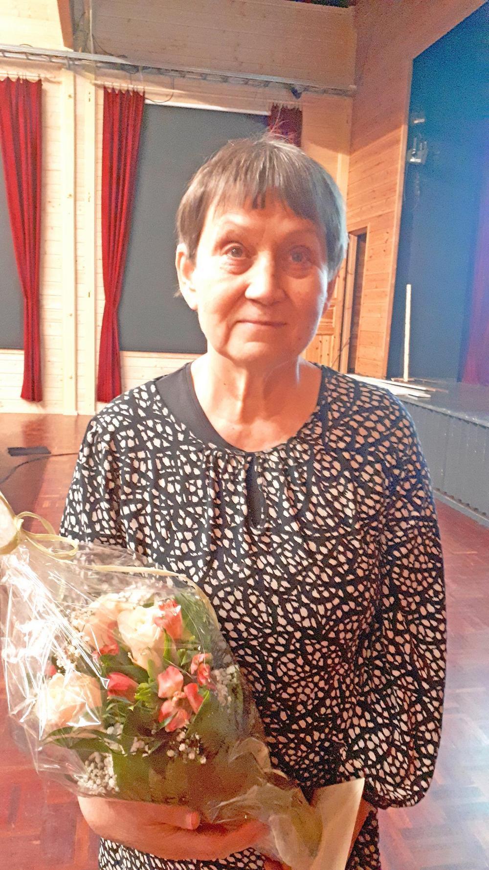 Puheenjohtaja 70 v. Muistettiin kukkasin ja lahjakortilla.