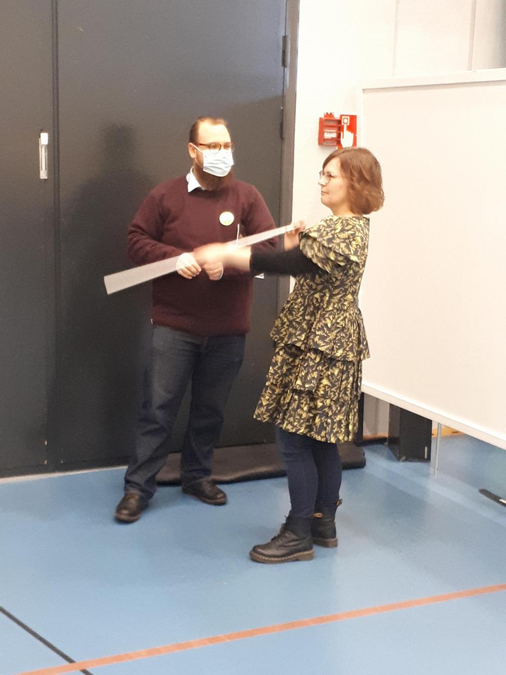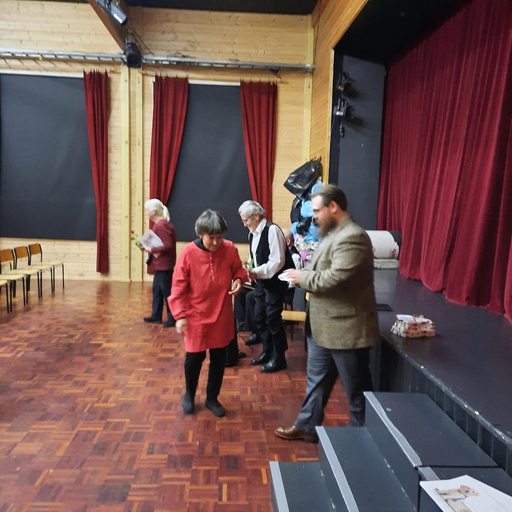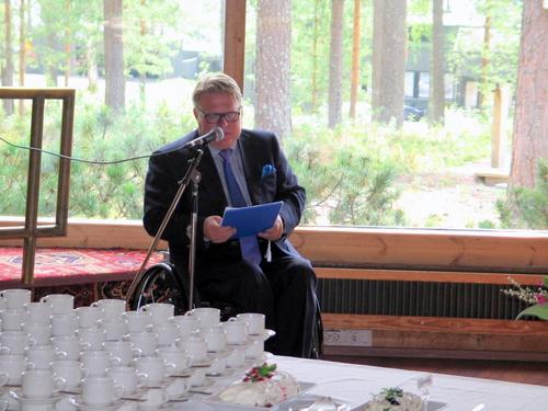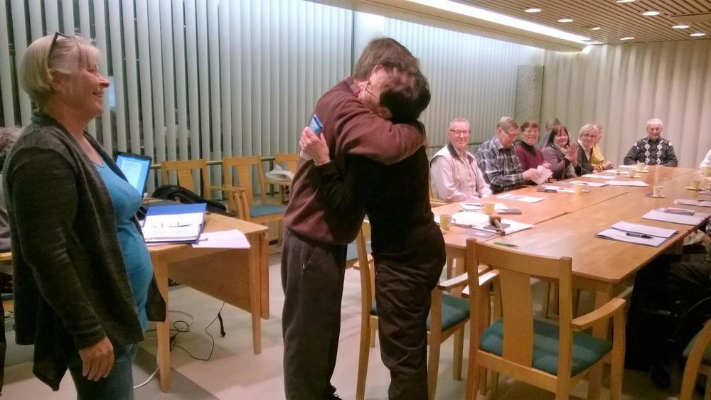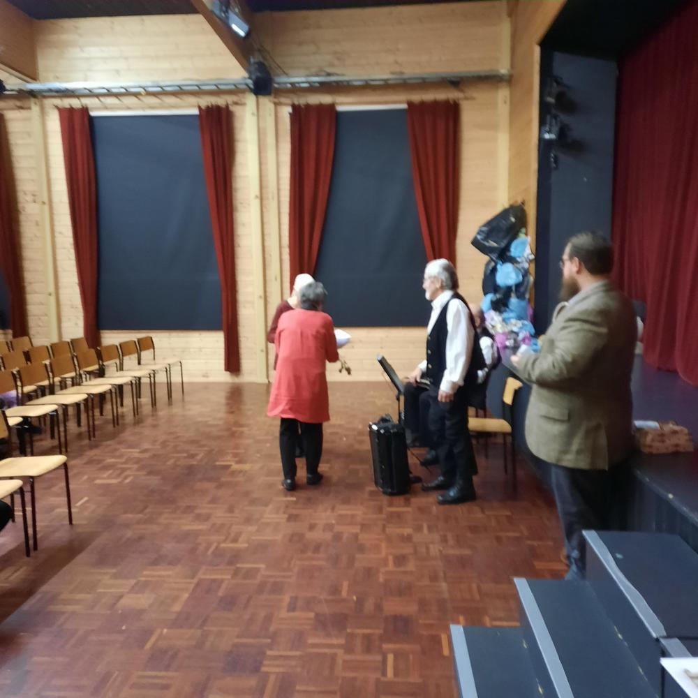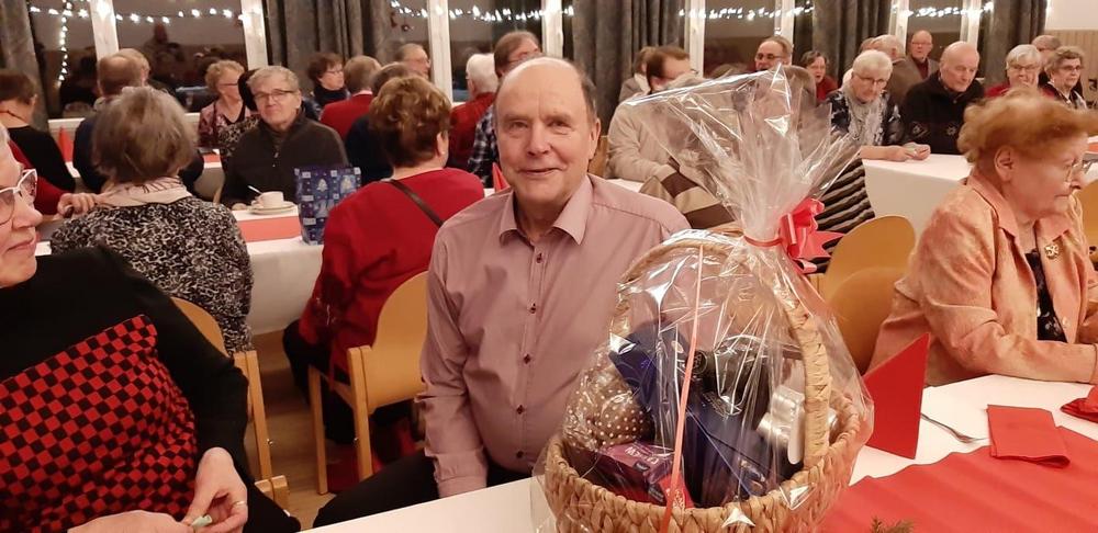 Puheenjohtaja 70 v. Muistettiin kukkasin ja lahjakortilla.