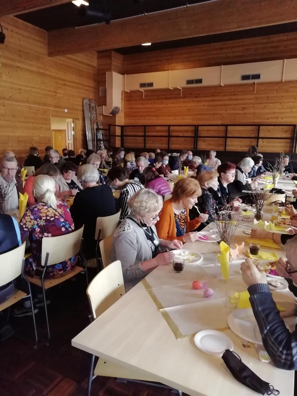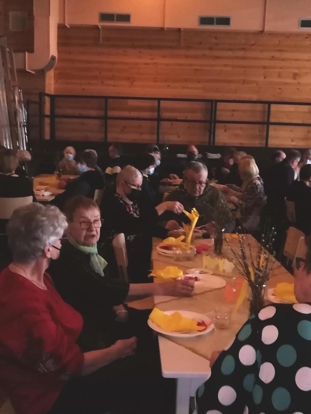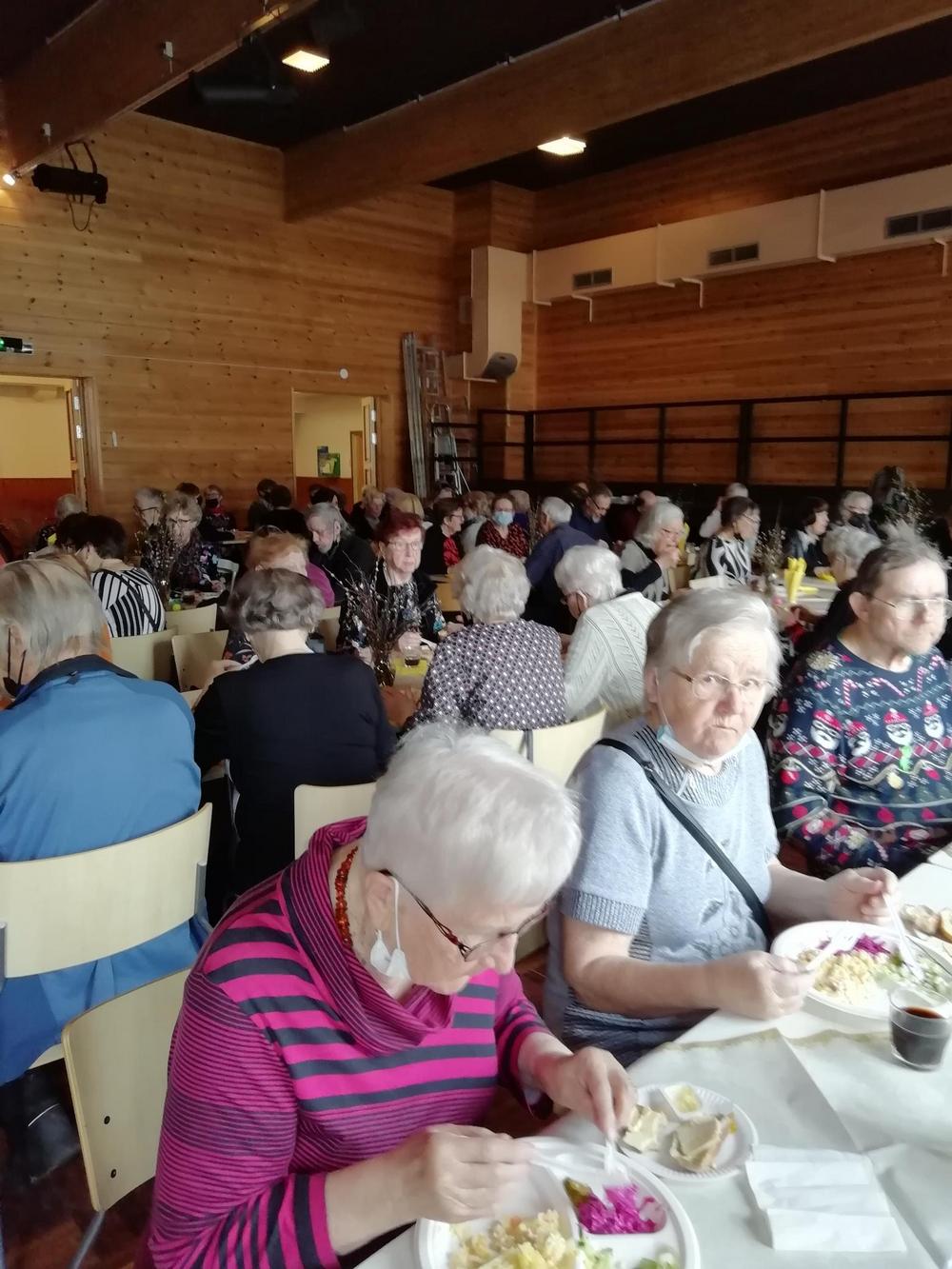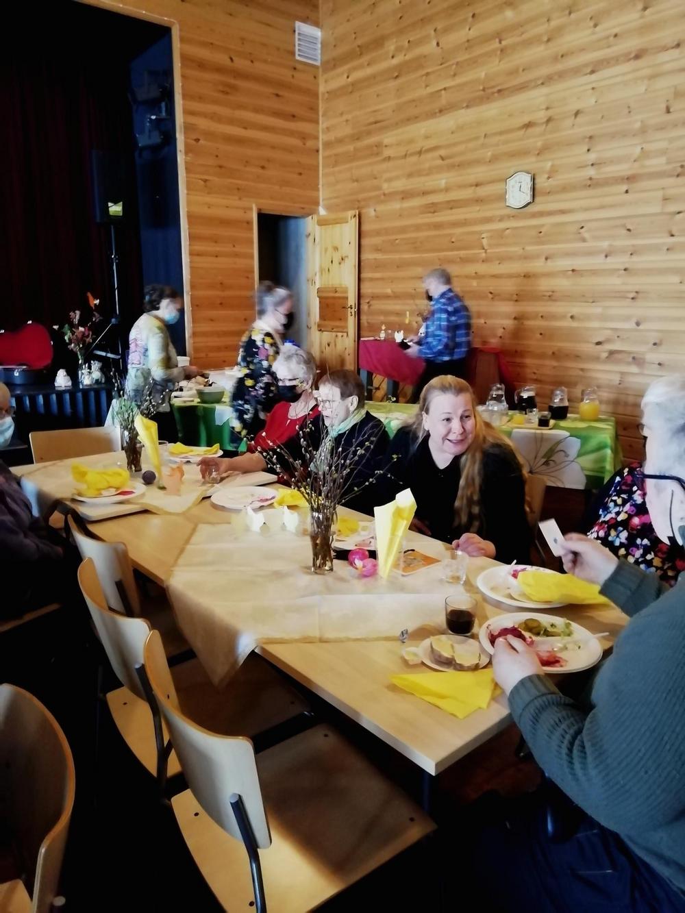 Yhdistyksen järjestämällä pääsiäislounaalla oli tiivis, lämminhenkinen tunnelma. Tilaisuudessa oli läsnä 110 henkeä. Yhteislauluosuuden vetivät Topi, Jussi ja Juhani. Lounas, salaatit lisukkeineen ja kahvipöydän herkut Arja Torpan ja Arvo Kuhmosen valmistamia. Jäsenet olivat todella kaivanneet yhteistilaisuuksia.