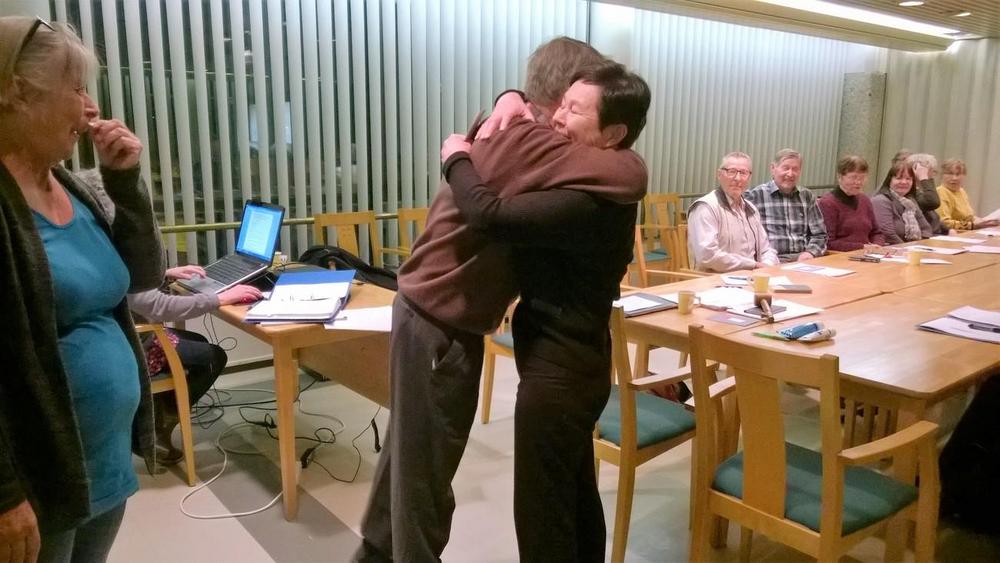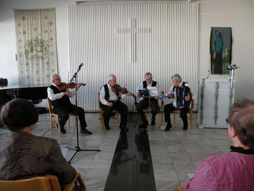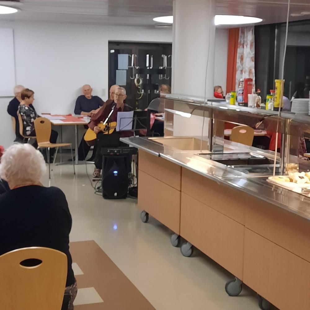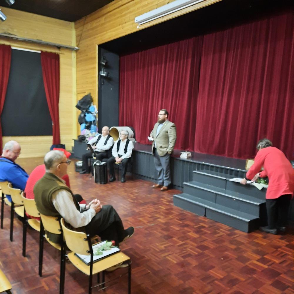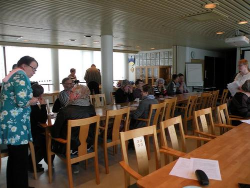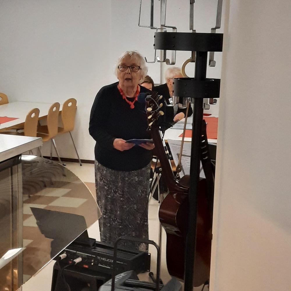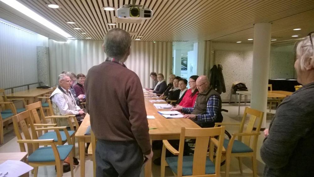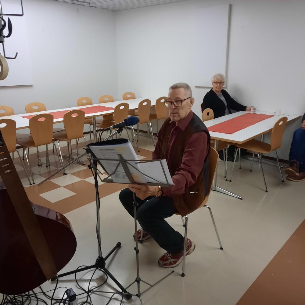Yhteislaulua Työväentalossa 23.2.2017 Reino Linnan johdolla