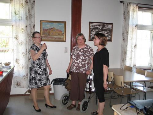 Messuilla Pentti Tolppila täyttää jäsenhakemusta Eeva Heinäselle. Takana Kyllikki Hokkanen.
