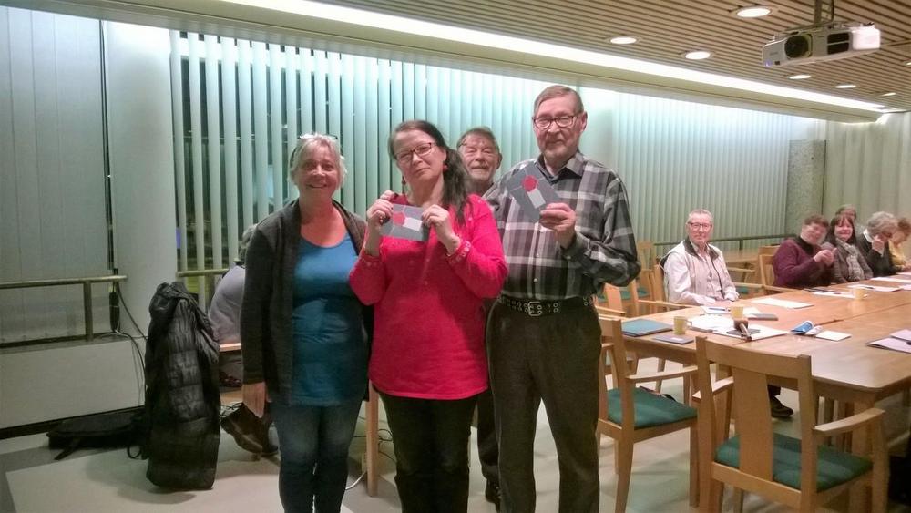Saarijärven yhdessä enemmän messuilla 11.3.2017 yhdistyksellä oli yhteinen osasto Arja Torpan kanssa. Kuvassa vas. Pentti Tolppila, Ritva Kuitunen, Arja Torppa ja Arvo Kuhmonen
